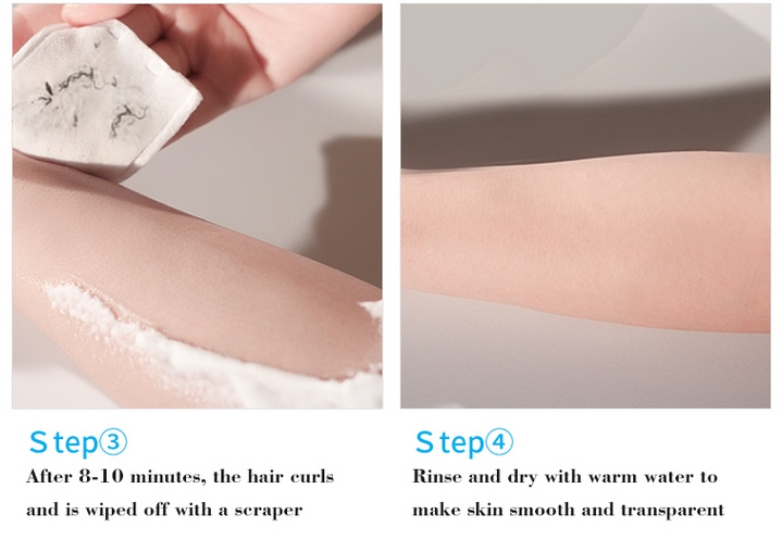 1. ฉีดพ่นบริเวณที่ต้องการกำจัดขน ทิ้งไว้ประมาณ 8-15นาที (ขึ้นอยู่กับส่วนขนหนาหรือบาง)