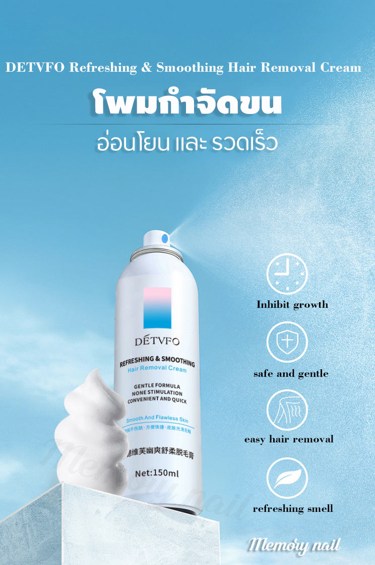 มูสสเปรย์โฟมกำจัดขน สินค้านำเข้าของแท้ มี อย.จากประเทศผู้ผลิต ใช้งานง่าย ปลอดภัย ไม่ระเคืองผิว เนื้อโฟมหนานุ่ม กำจัดขนได้ล้ำลึกหมดจด เกลี้ยงเกลา กำจัดขนได้ในเวลาอันรวดเร็ว เพียง 8-15 นาที ใช้ได้ทุกส่วนของร่างกาย ผิวเนียนขึ้นอย่างเห็นได้ชัด ช่วยยับยั้งขนขึ้นใหม่ และควบคุมความยาวของขนได้นานยิ่งขึ้น