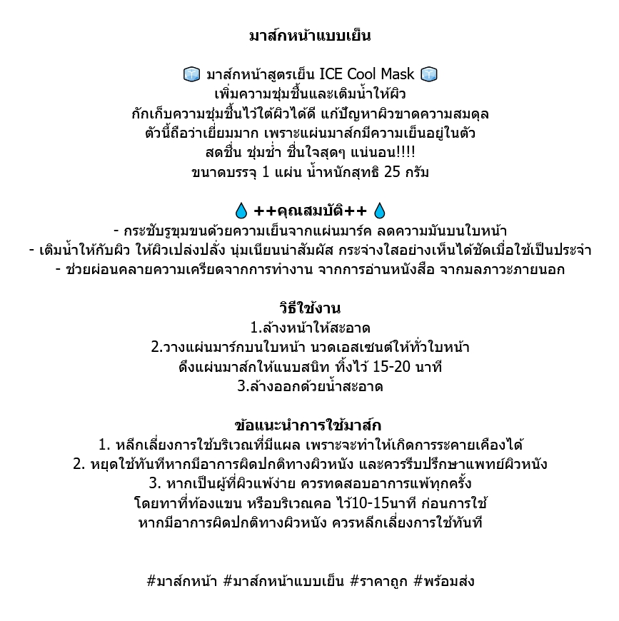 มาส์กเย็น,มาส์กหน้าสูตรเย็น, ICE Cool Mask,มาส์กหน้า,มาส์คหน้า