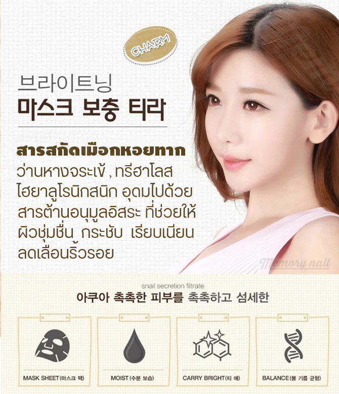 แผ่นมาร์สหน้า มาส์กส่วนผสมจากสารสกัดเมือกหอยทาก